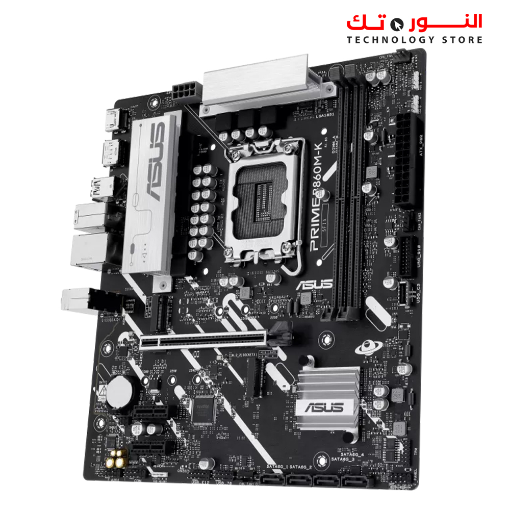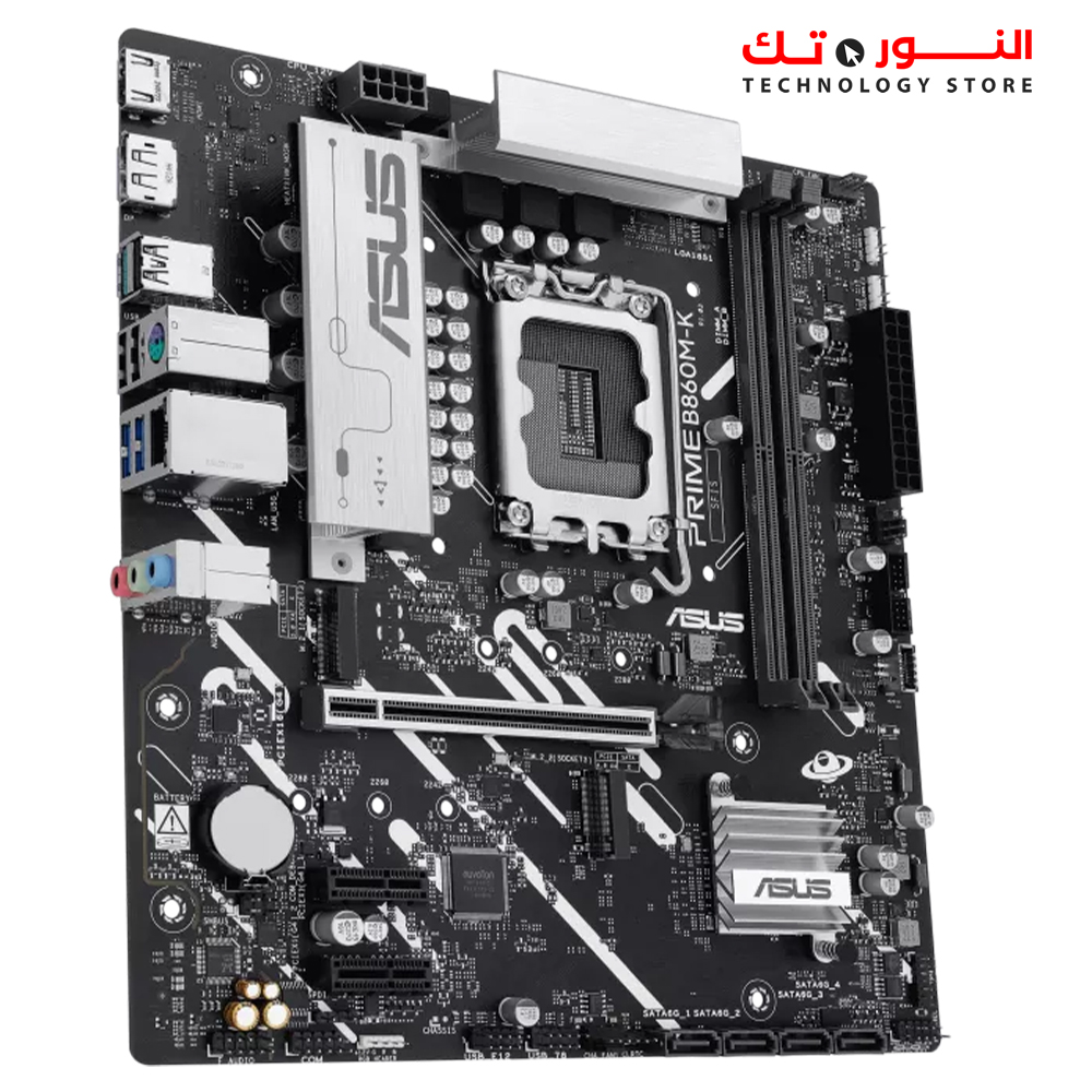 ASUS PRIME B860M-K هي لوحة أم (Motherboard) بحجم mATX مبنية على شريحة Intel B860، ومصممة لدعم معالجات Intel الحديثة (Socket LGA1851) مع تقنيات متطورة مثل DDR5 و PCIe 5.0 لتقديم أداء قوي ومستقر لتجميعات الجيمينج والعمل.
