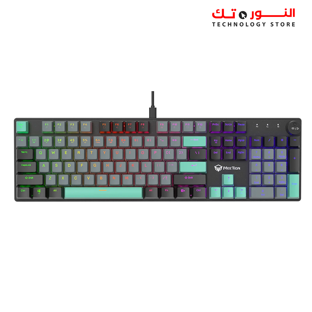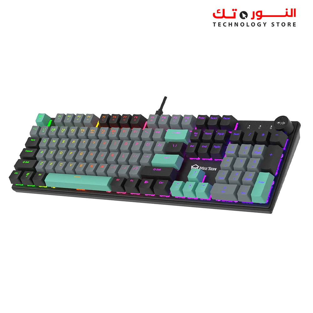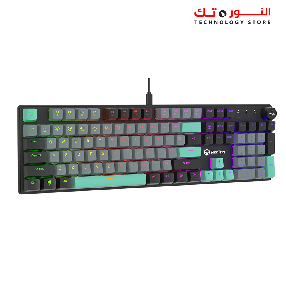 MEETION MK009RD Rainbow RED Switch Keyboard هو كيبورد ميكانيكال مخصص للجيمينج، مزود بـ Red Switches التي توفر ضغطات ناعمة وسريعة، مع إضاءة Rainbow تعطي شكل جذاب واحترافي للـ setup، مما يجعله مناسب للألعاب والاستخدام المكثف.