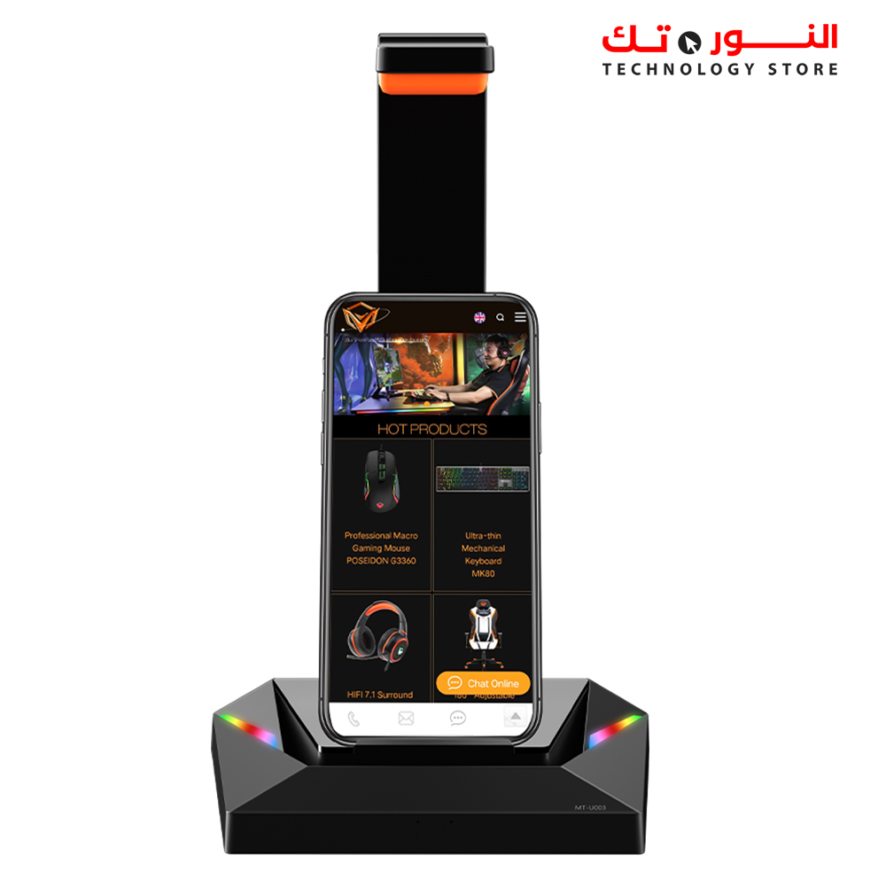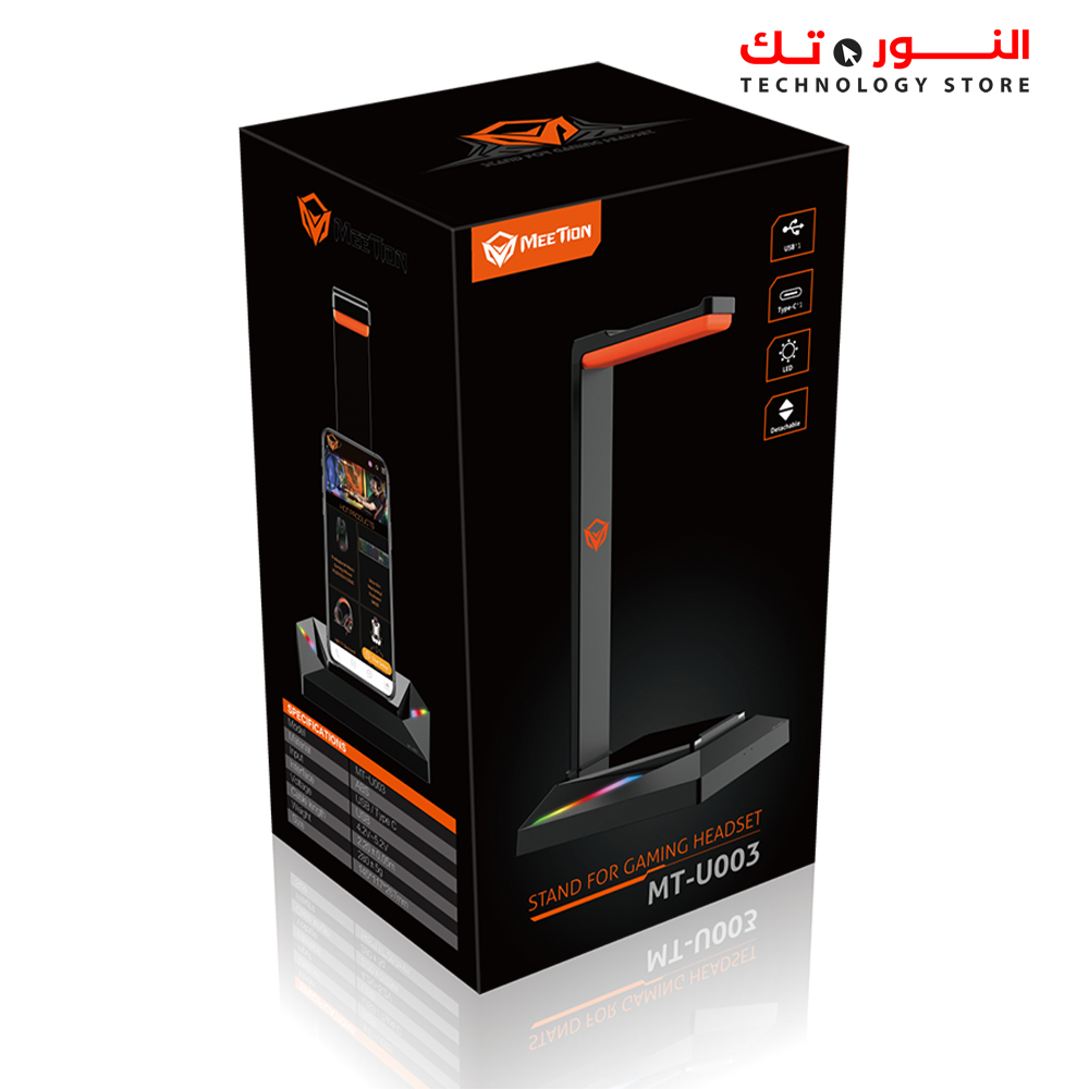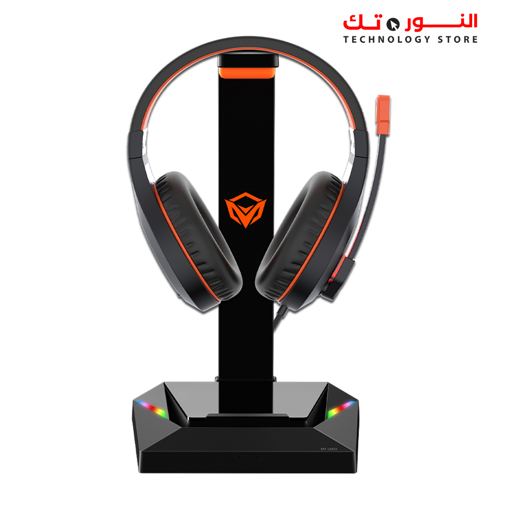 MEETION U003 STAND RGB Gaming Headset Stand هو حامل مخصص لسماعات الجيمينج، يساعدك على تنظيم مكتبك بشكل أفضل ويحافظ على السماعة في مكان ثابت وآمن بدل تركها على المكتب بشكل عشوائي. كما أن وجود إضاءة RGB يمنحه شكلًا جماليًا مميزًا يناسب إعدادات الألعاب الحديثة ويضيف لمسة احترافية إلى مساحة اللعب أو العمل.