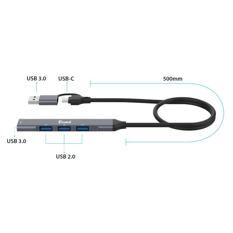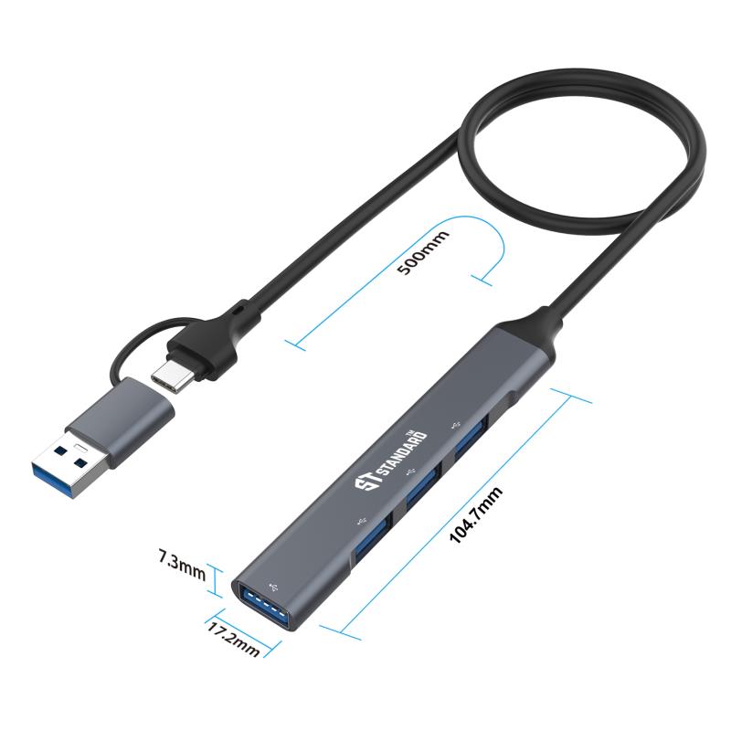 STANDARD 9701 HUB USB-C UCA Adapter Cable USB-C To USB 3.0 With Four Ports HUB And High Speed For Multi Devices 0.5M