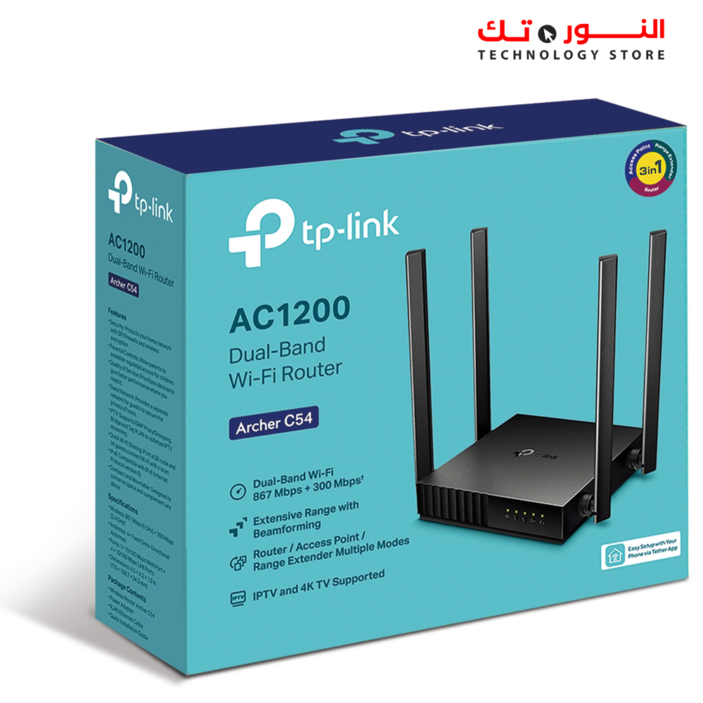 TP-LINK ARCHER C54 ACCESS POINT AC1200 DUAL BAND هو جهاز عملي يساعدك على تقوية وتوزيع شبكة الواي فاي بشكل أفضل، مع دعم AC1200 وDual Band لتقديم اتصال أسرع وأكثر استقرارًا في المنزل أو المكتب.