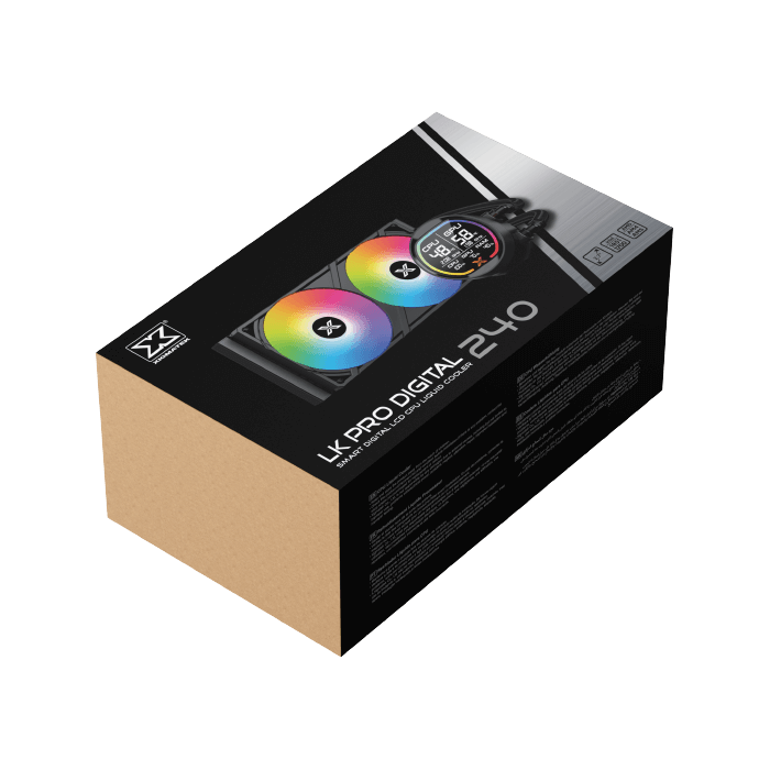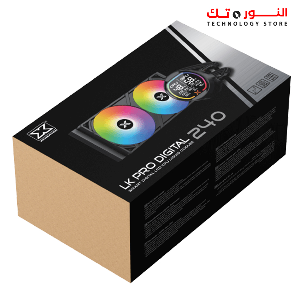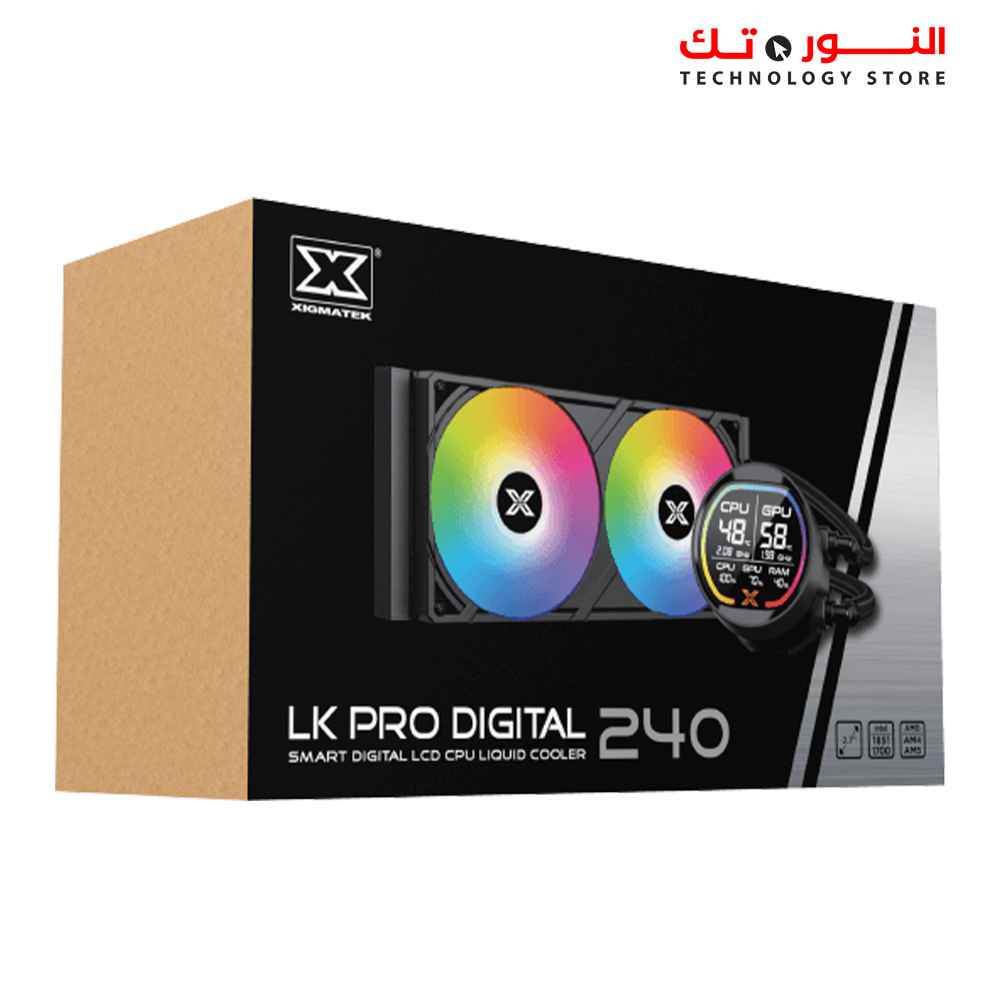 XIGMATEK LK PRO ARGB 240 DIGITAL LIQUID BLACK 2.7 SMART LCD هو مبرد مائي مغلق للمعالج بمقاس 240 ملم، يجمع بين التبريد القوي والتصميم الجذاب داخل الكيسة. يأتي مع شاشة ذكية 2.7 بوصة على المضخة، وإضاءة ARGB، مع مراوح لتقديم توازن ممتاز بين الأداء والهدوء، مما يجعله خيارًا مناسبًا لتجميعات الألعاب والعمل.